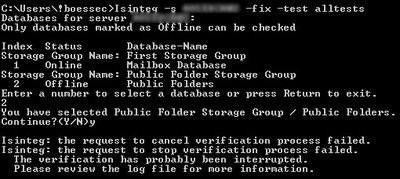 - Now Isinteg command line run till no errors are reported on the exchanges server