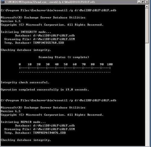 - Now Run the Eseutil \G to check the integrity of repair EDB file