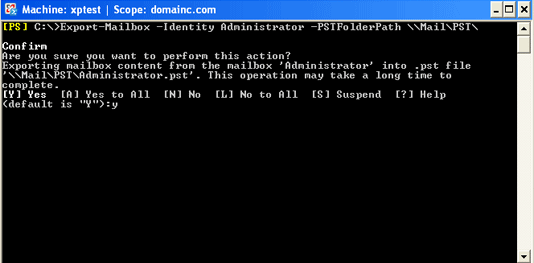 Export-Mailbox -Identity Administrator -PSTFolderpath \\Mail\pst\